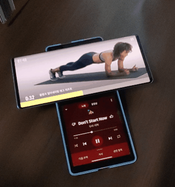 사회적 거리두기를 실천하면서 홈트레이닝 앱이 떠오르고 있죠. 나이키 트레이닝 앱에서 가이드 영상을 넓게 틀어놓고 보조스크린에서는 음악컨트롤 등을 할 수 있습니다.